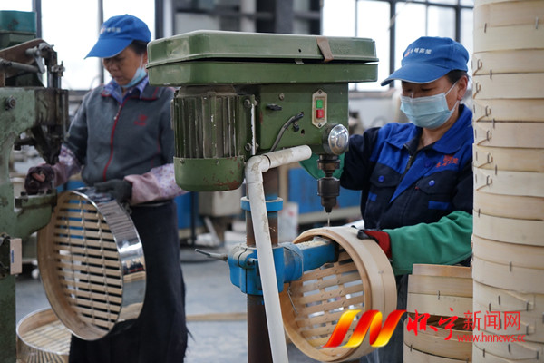 10月11日,村民在江鎮(zhèn)鎮(zhèn)家門口的一家在蒸籠廠生產車間制作產品。近年來,我縣不斷延伸拓展就業(yè)創(chuàng)業(yè)新平臺、新崗位,夯實產業(yè)發(fā)展基礎,進一步拓寬群眾增收渠道,讓更多村民端穩(wěn)了家門口的“飯碗”,吃得更香、更踏實。檀志揚 劉慶生 攝